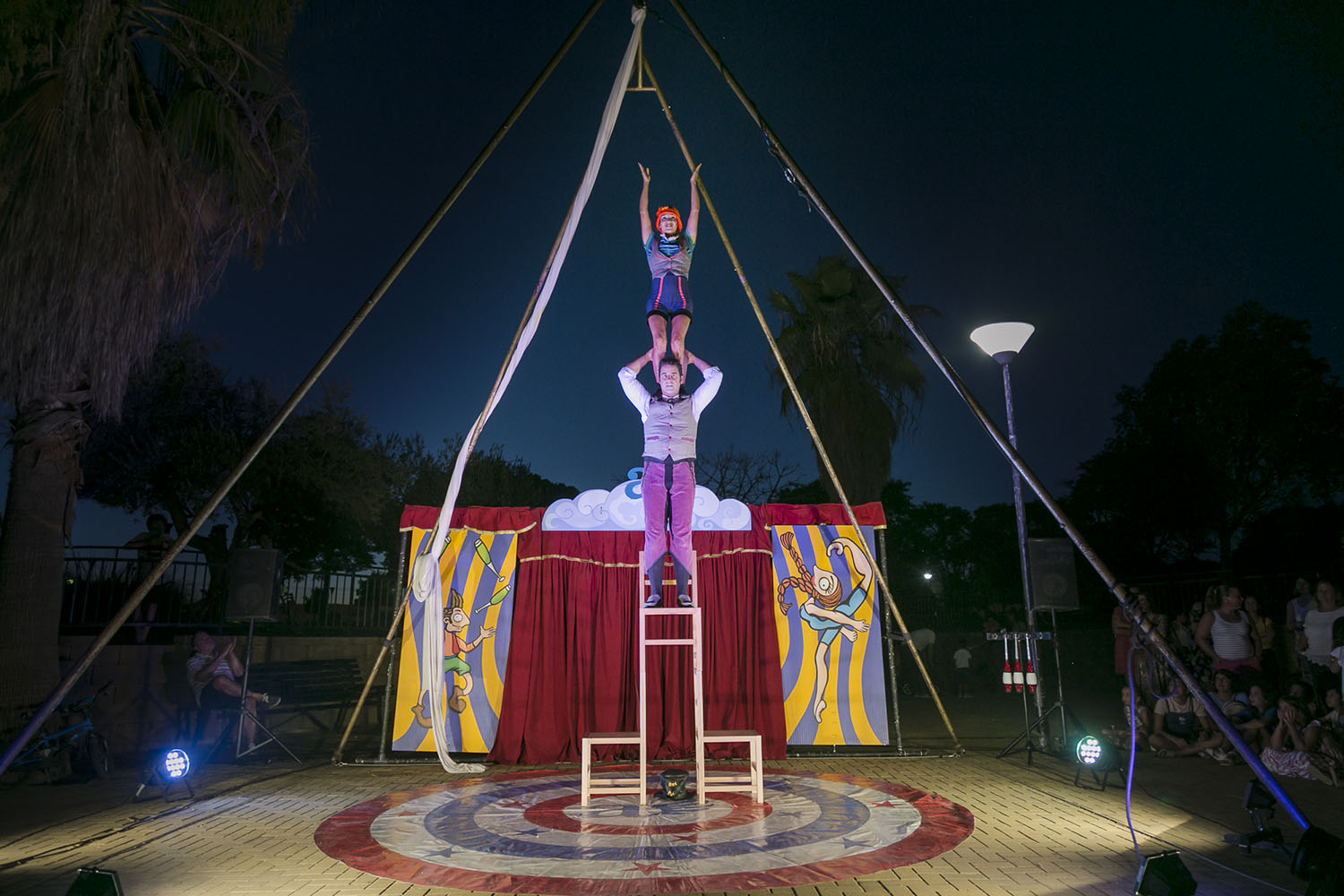 Con prisas y sin saber hacer nada en especial deciden comenzar la función y convertirse en “artistas”. Las expectativas crecen retomando las esencias del viejo circo: El olor a palomitas, el más difícil todavía, una aérista que vuela, un Augusto y Carablanca, una pista vacía y todo por hacer.